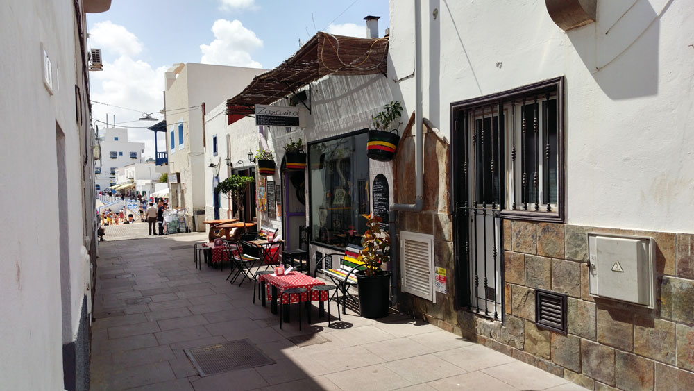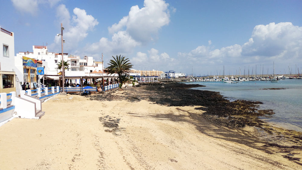 Nach nur viereinhalb Stunden Flug (von Hannover aus) geht es mit dem Flughafenshuttel der Surfschule direkt in die Unterkunft. Dabei ist schon die Fahrt nach Corralejo am nordöstlichen Zipfel der Insel lohnenswert: Immer entlang an der Küste mit Blick auf den Atlantik. Das gibt bereits einen Vorgeschmack auf die perfekten Surfbedingungen der nächsten Tage. In der Unterkunft angekommen heißt es dann schnell umziehen und ab in die Stadt. Corralejo bietet mit seinen zahlreichen Bars und gemütlichen Restaurants ein optimales Umfeld, um auch kulinarisch auf Reisen zu gehen. Vor allem Fischliebhaber kommen hier ganz auf Ihre Kosten und können in zahlreichen Lokalitäten die einheimischen Spezialitäten probieren. Natürlich sind aber auch viele andere kulinarische Köstlichkeiten aus aller Welt vertreten. Am Rande sei erwähnt, dass das Preisniveau auf Fuerteventura durchweg vorzeigbar und verglichen mit so mancher deutschen Stadt durchaus als günstig zu bezeichnen ist.